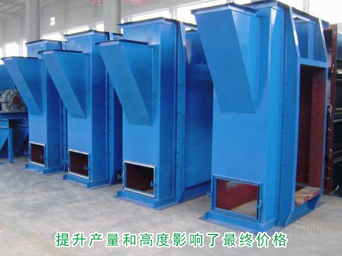 斗式提升机根据客户不同的提升高度与产量需求价格也是不同的,提升高度越高其采用的钢材长度与厚度也相应增长增厚,提升产量越大所选择的型号也就相应越大,所以不同大小的提升产量与高度影响了型号的选择进而影响了终价格。