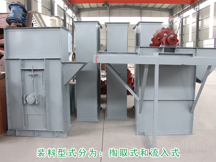 掏取式:是由料斗在尾部机壳的物料中掏取装料。对于粉末状、粒状、块状的无磨琢性或半磨琢性的散状物料,由于掏取时不产生很大的阻力,料斗可以在较高的运动速度,一般为0.8~2m/s,所以它通常和离心式卸料配合应用。