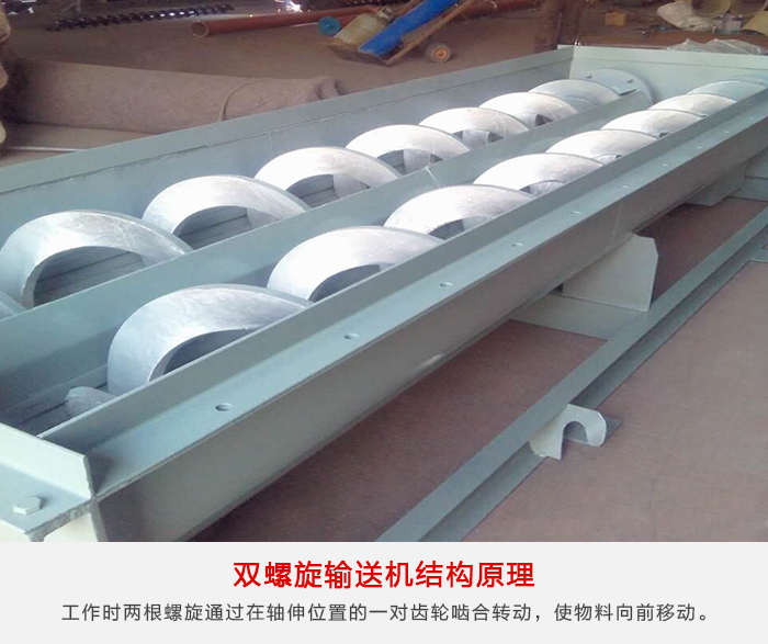 双轴香蕉视频下载地址链接其原理是在两条无缝钢管内分别装有一根实体螺旋,其中一根是左旋,另一根是右旋。工作时两根螺旋通过在轴伸位置的一对齿轮啮合转动,由螺旋体的转动,使物料作轴向移动,从而达到输送目的。