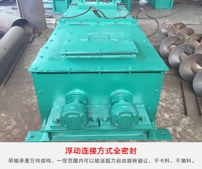 各传动部位都是采用浮动连接方式,吊轴承是万向结构,使吊轴承、螺旋体和尾部总能形成一个整体的旋浮体,在一定范围内可以输送阻力自由旋转避让,不卡料,不堵料。