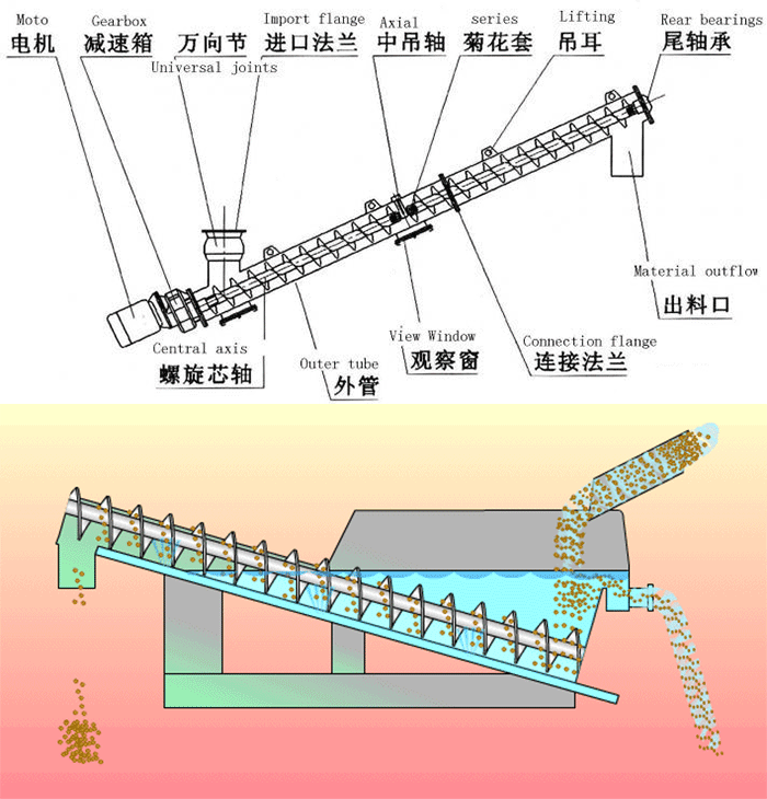 倾斜香蕉视频下载地址链接是利用电动机经减速器带动螺旋回转,通过旋转,把物料沿固定的机壳内推移而进行输送工作,从而输送到预定的位置。 大角度香蕉视频下载地址链接根据各种用途、安装位置,型号、输送方式,对减速器、电动机的安装位置可多样化、不受限制。