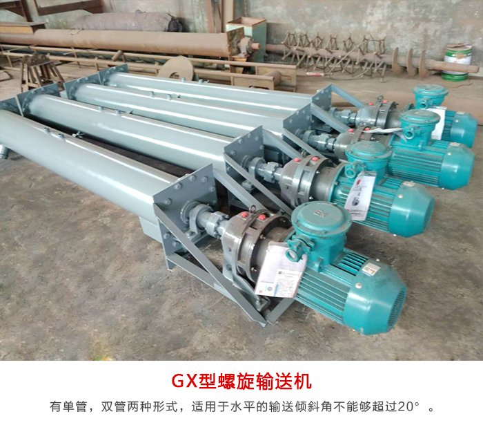 GX型香蕉视频下载地址链接有单管,双管两种形式,适用于水平的输送倾斜角不能够超过20°。可输送一些块状的(小块状物料)例如:麦子,玉米,黄豆等粮食。