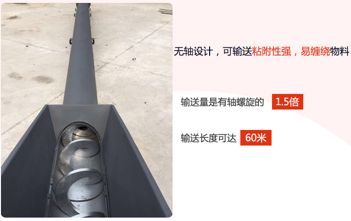 2、输送量是相同直径传统有轴香蕉视频下载地址链接的1.5倍,单机输送长度可达60米。