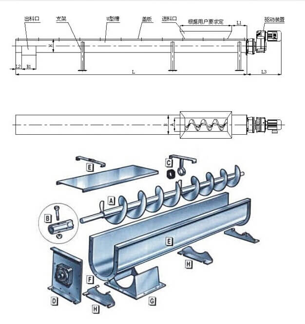 (1)U型槽式香蕉视频下载地址链接长度小于35m时,为单轴驱动螺旋。