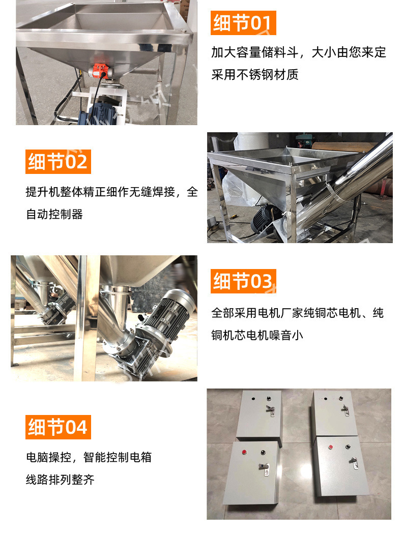 适用物料:面粉,盐,味精,中药粉,西药粉,各种饲料等。