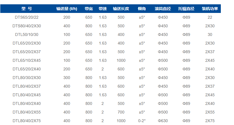 固定带式输送机由于输送量大、结构简单、维护方便、成本低、通用性强等优点,而被广泛地应用在冶金、矿山、煤炭、港口、交通、水电、化工等部门进行装车、装船、转载或堆积各种常温状态的松散密度为500~2500kg/m3各种散状物料或成件物品。